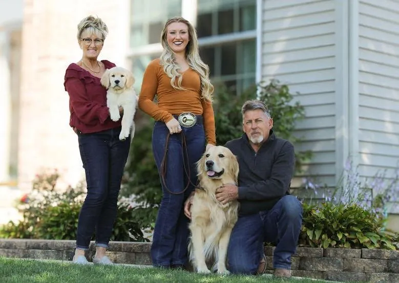 As a child, I was introduced to the Golden Retriever through my brother. He had a friend who was moving out of state and asked my brother to adopt his female golden. Her name was Goldie, and I loved her from the minute I saw her. I made a promise to myself that when I was able, I was going to own and breed this amazing breed of dogs. My dream came true in 1993. Our oldest daughter, then 3 years old, received her first golden retriever puppy from Santa. We named him Samson because he had beautiful hair and strength like Samson in the Bible. He proved to be the best thing we could have done for our family. He was such a sweet guy, but if a stranger came around our kids, he would place himself between the stranger and our kids. He was in his way, protecting and warning the outsider not to mess with his family. Even though goldens are extremely friendly, they also have an intuition of danger, and I believe they would give their life to save their family. He would read our reaction to someone and know if they were friend or foe. So our sweet Sammy was the first of our golden line. Both of our children have been involved with goldens their entire lives. Having a pet taught them responsibility, compassion, and gave them a strong work ethic.