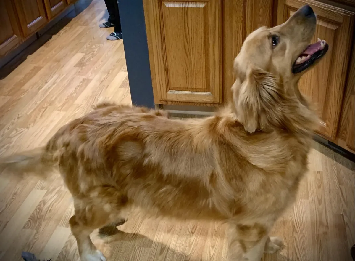 Hearts of Gold Tulsa is our splendid Golden Retriever female, one of our newer additions with a very gentle temperament. She boasts a great pedigree, showcasing her exceptional lineage. Along with her wonderful personality is her striking beauty, featuring a soft, wavy, golden coat and excellent conformation. We are eager to see the qualities her puppies will bring. Click here to view Tulsa's pedigree.